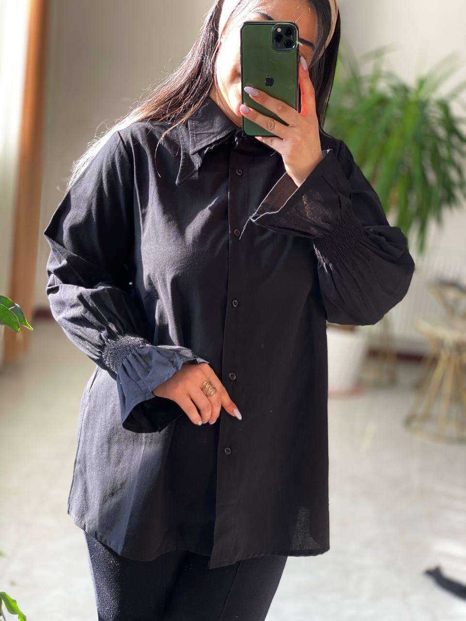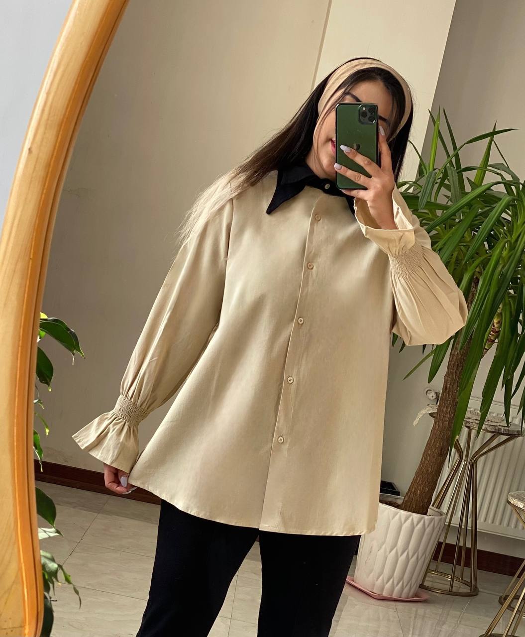 : شومیز یقه دوبل 👚جنس : لنین ترک درجه یک (بدون ابرفت ) 🌈رنگ بندی : مشكی , کرم , نسکافه-ای , 📏سایزها : فری-38-46 , 📝توضیحات : ✅دورسینه 114 ✅قداستين 60 ✅قدشومیز78 ✅دوربازو 44 .