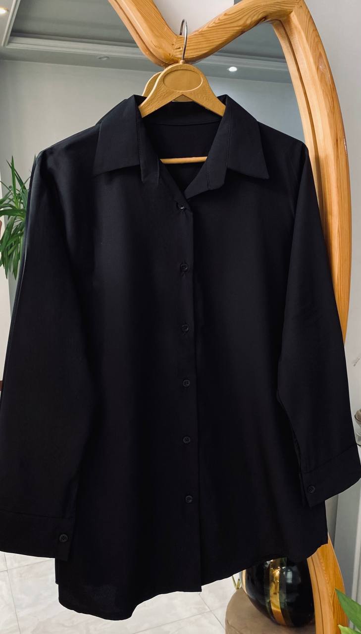 🖋نام : شومیز مانتو پناه 👚جنس : الیزه 🌈رنگ بندی : مشکی , 📏سایزها : فری-38-44 , 📝توضیحات : ✅دورسینه 104 ✅قد شومیز75 ✅آستین 58 ✅دوربازو 38 .